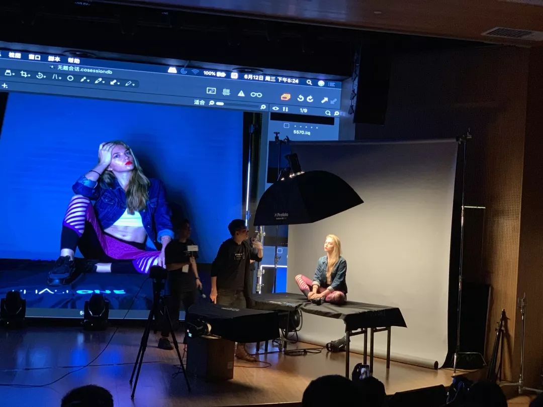 在实操过程,相机设置,现场布置,灯光摆放、模特姿势等更是亲自“操刀”,拍摄时不断传授技巧,引得观众纷纷拿起自己的相机跟着拍摄。